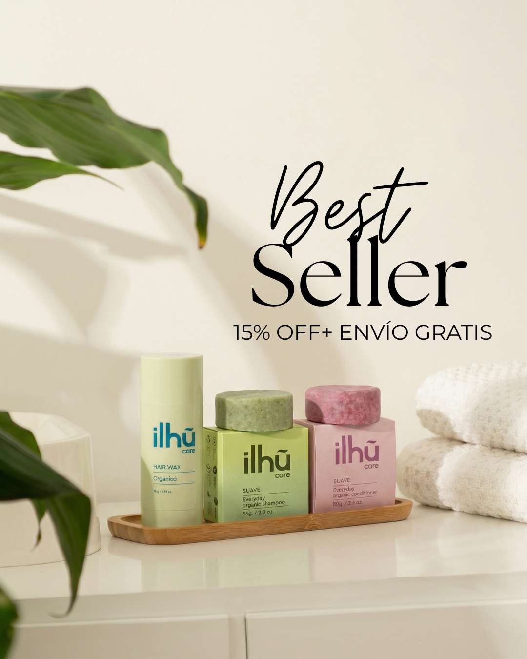 Shampoo, acondicionador y cera sólida con ingredientes orgánicos